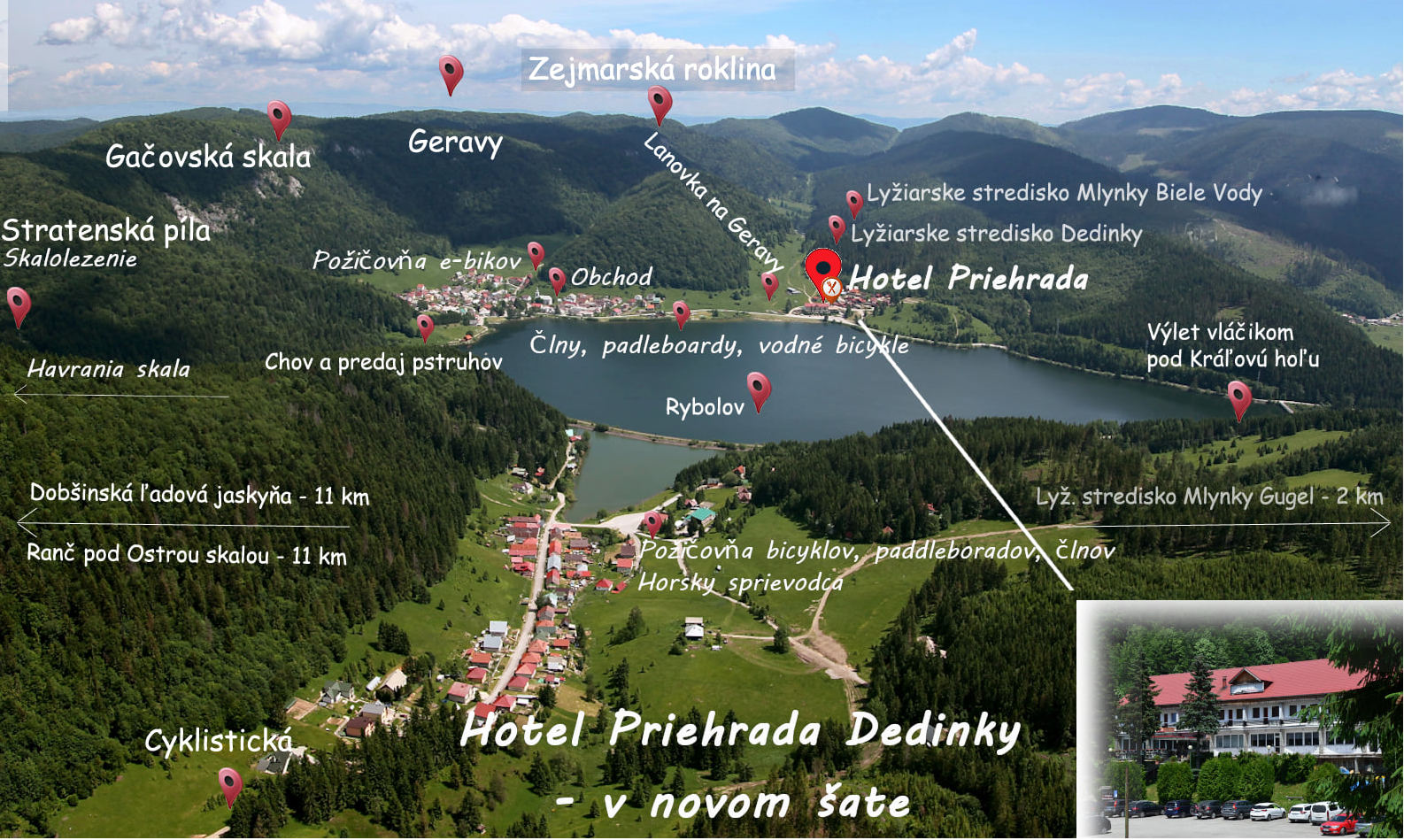 Hotel Priehrada is located in the Slovak Paradise National Park, in the village of Dedinky, in the Gemer region. Because it is located by the reservoir Palcmanská Maša it has a beautiful view of the water. There are many natural attractions and sports activities nearby. More details here ...